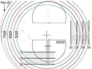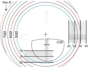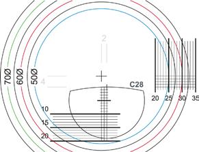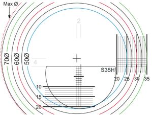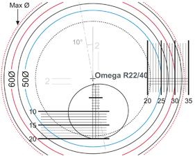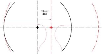 In most cases, the optical centre can be displaced by up to 15 mm from the geometrical centre. This allows us to produce lenses with a radius from OC to the temporal edge of more than 50 mm. This calculation is automatically done when the frame shape is sent in.