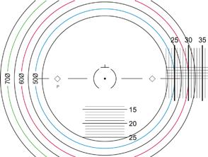 Sometimes when there is a small Myosoft or Hypersoft zone, we must decrease this distance. The prism reference point will always be centred between these marks. In these cases, it is 26 mm between the engravings.