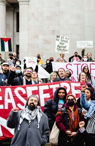 MOVEMENT MAG feels the thrumming of a local movement for a free Palestine here in so-called Olympia, WA (the traditional lands and waters of Squaxin/Coast Salish peoples and their relatives). We’ve felt it growing here -- slowly, consciously, surely -- since the events of October 7, 2023. Neighbors have been leaving their individual lives and coming together at weekly vigils and community meetings; overcoming the anxieties that come with being in political spaces; coming back to each other; to become a part of something bigger than ourselves. Because we see what’s happening, what keeps happening.