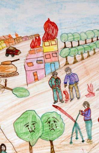 Background art from “A Child’s View from Gaza” collection, drawn by children who lived through the 2008-2009 Israeli bombardment of Gaza. The collection was censored before its first exhibition at the Museum of Children’s Art in Oakland, CA.