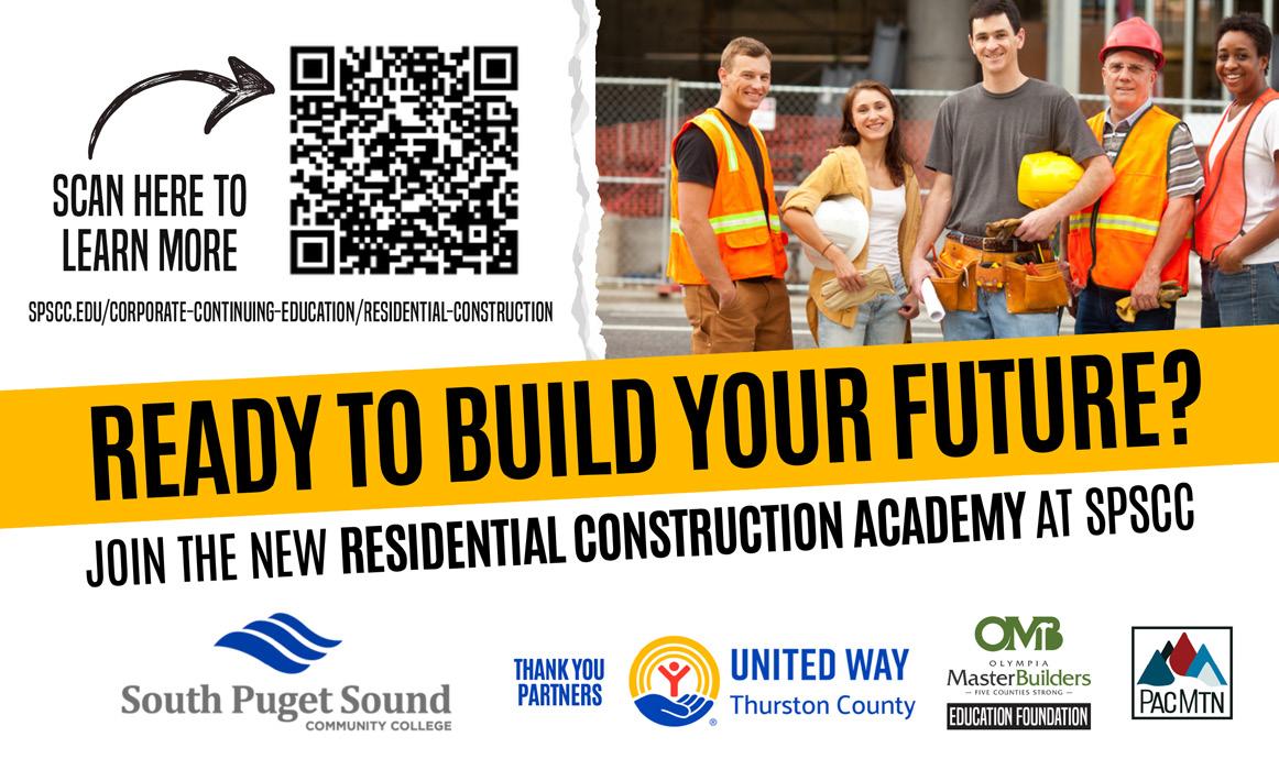 South Puget Sound Community College (SPSCC), in partnership with the Olympia Master Builders (OMB) Foundation, United Way of Thurston County (UWTC), and Pacific Mountain Workforce Development Council (PacMtn), is launching a new 13-week Residential Construction Academy to train and certify the next generation of skilled construction professionals.