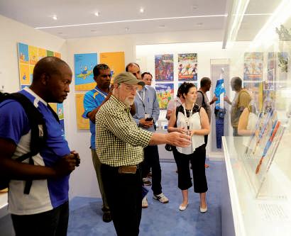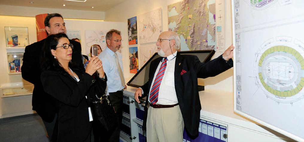 Τhe Greek Deputy Minister for Sport Stavros Kontonis is guided around the interactive program of the IOA.