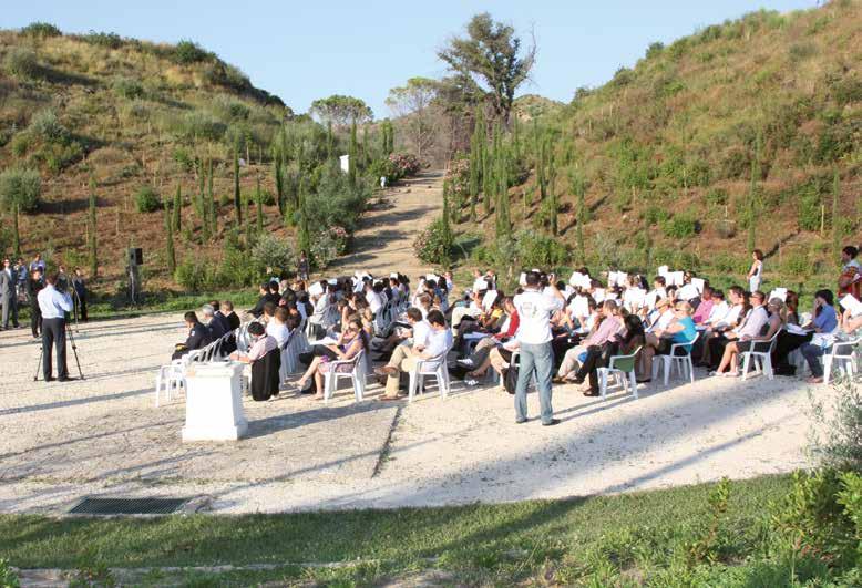 During the first years of operation of the IOA, participants lived in tents (1962) and lectures were held outdoors (1964) overlooking the archaeological site and the river Alpheios.