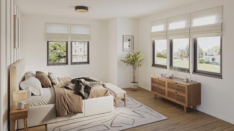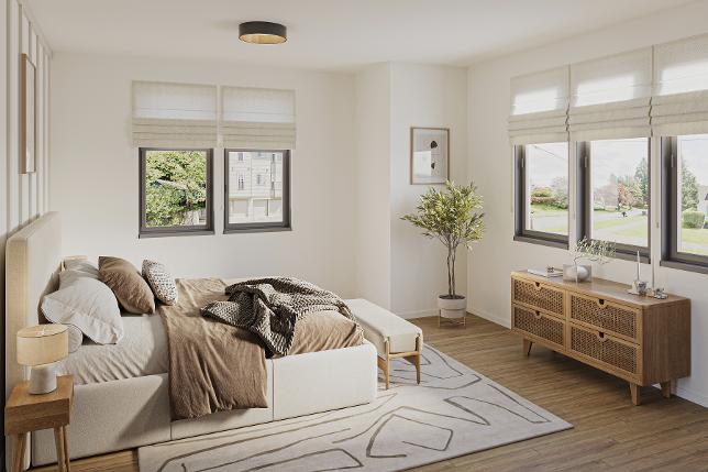 Each light-filled three-level residence offers a seamless layout, starting with an entry patio,private oversized one-car garage with ample storage,a ground level flex room for live/work optionality,an open-concept living room,dining area and gourmet kitchen on the main level,and two bedrooms with walk-in closets and private bathrooms perched on the top floor.