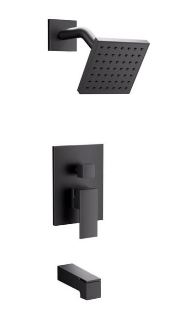 TASORO®Block Tub Shower Set w th square heads n matteblack