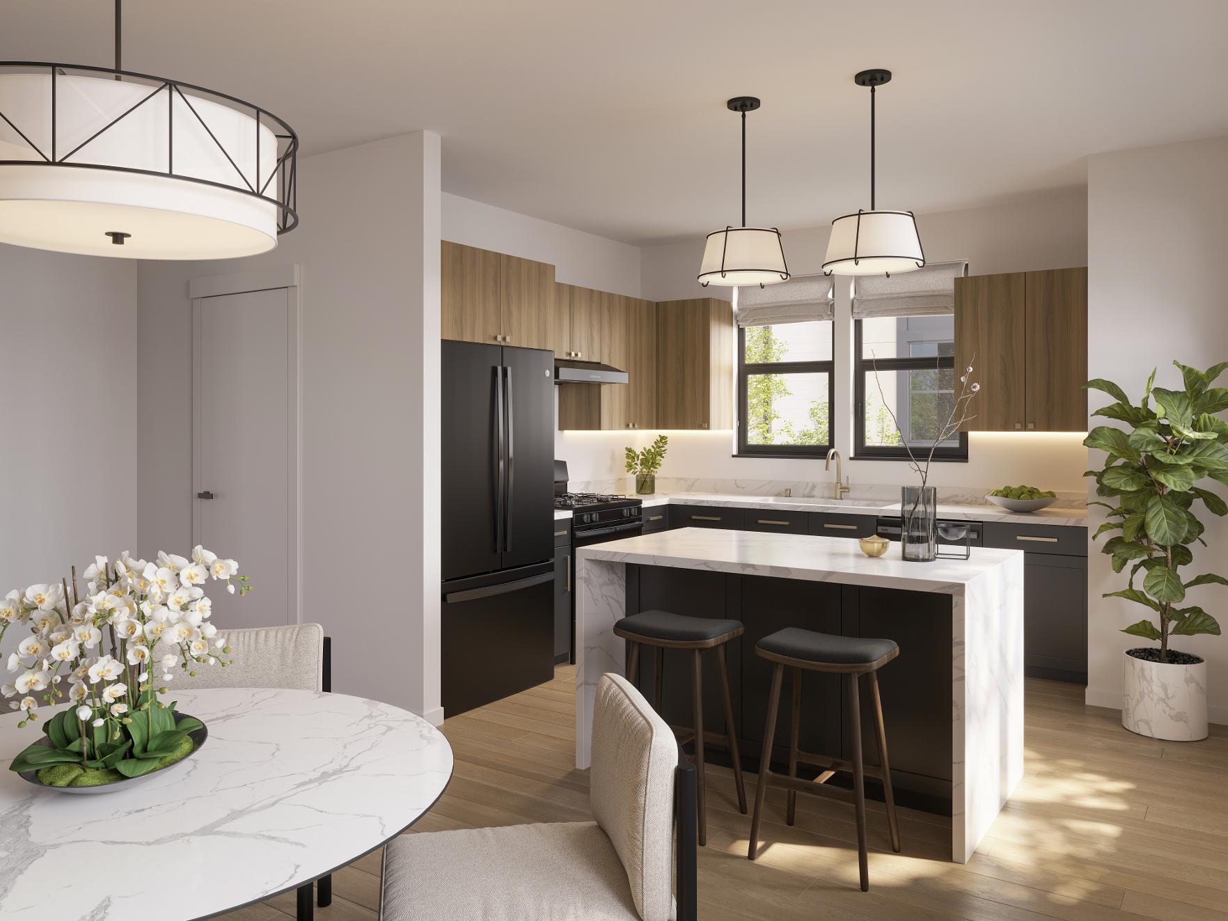 The open-concept design of Thirteen + Cherry Townhomes creates a seamless flow between the living, dining,and kitchen areas,while expansive windows invite abundant sunlight to fill the space Whether you're entertaining guests or enjoying a quiet evening,these townhomes offer a bright,airy ambiance that perfectly complements your urban lifestyle.