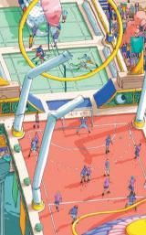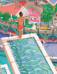місця Франції та її столиці, місця проведення олімпійських змагань, олімпійські символи та церемонії тощо. Розгляд його деталей і мініатюрних сцен, які у сукупності створюють захопливе та надзвичайно барвисте ціле, дає змогу зануритися в атмосферу майбутнього олімпійського свята.
