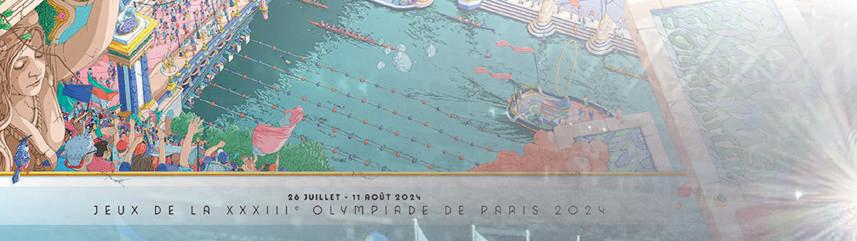 Два взаємодоповнюючі офіційні плакати Ігор ХХХІІІ Олімпіади 2024 р., що створені французьким ілюстратором Уго Гаттоні, були представлені на огляд 4 березня 2024 р у Музеї Орсе (Париж).