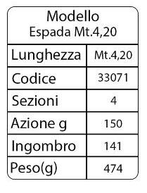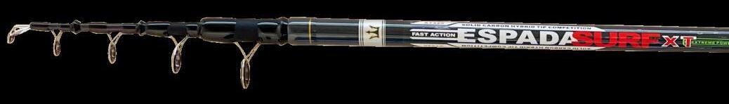 ESPADA SURF XT: Canna telescopica in carbonio ideale per chi desidera portare in spiaggia una canna da pesca perfettamente equilibrata. La lunghezza di questo modello consente di lanciare a grande distanza anche con piombatura notevole fino a 150g La Espada Surf offre un ottimo rapporto tra qualità e prezzo ed è ideale per chi non vuole spendere molto oppure si dedica al surf casting a livello amatoriale senza però dover rinunciare alle importanti caratteristiche tecniche che una buona canna da Surf deve assolutamente osservare, al fine di garantire Performance e divertimento in pesca.