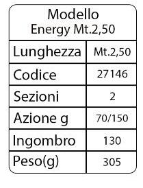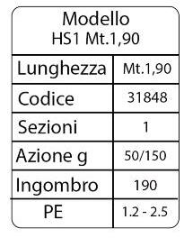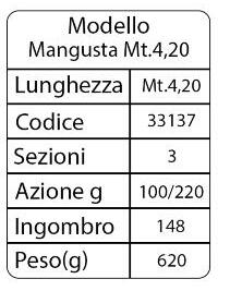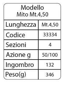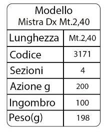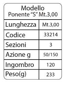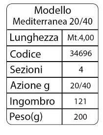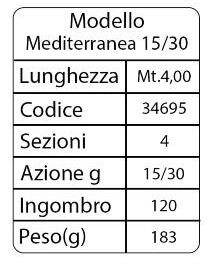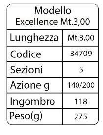 Mt.1,80 - Ingombro cm.58 / Mt.3,00 - Ingombro cm.77