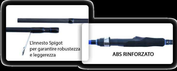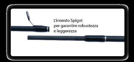 Mangusta Surf: Sottile, leggera e iper bilanciata la nuova Mangusta si presenta sul mercato come TOP di gamma nel comparto Surf/Ripartite di altissima gamma Si tratta di un attrezzo ben congeniato nel disegno delle sezioni ed assemblato con materiali di ottima qualità in grado di rispondere alle richieste più impegnative che la disciplina del Surf Casting riserva anche agli agonisti più esigenti L’anima della canna è realizzata in carbonio alto modulo, la vetta riportata è in carbonio pieno affinchè la canna possa avere un azione prettamente di punta “Fast” ed un’estrema sensibilità in pesca. La riserva di potenza è realmente il suo punto di forza perchè, anche se cosiderato uno tra gli attrezzi più leggeri e sottili in commercio, nello stesso tempo, garantisce un’incredibile forza durante la fase di lancio che consentirà anche al pescatore piu’ esigente di raggiungere con estrema precisione Spot di pesca molto distanti dalla costa oltre al fatto che il recupero di prede impegnative potrà essere effettuato in estrema sicurezza e senza alcuno sforzo fisico. Monta anelli speciali “K” MINIMAL in Sic con trattamento Saltwater anticorrosione