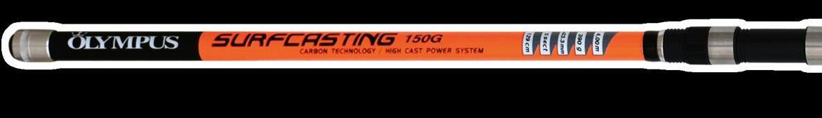 Megatron Surf: Fiore all’occhiello di casa Olympus nel mondo del Surf Casting di alto livello. Canna in alto modulo di carbonio con una potenza di lancio che oscilla da 140g a 230g e che permette di regalare importanti performance anche agli Agonisti più esigenti che praticano il Surf Casting L’azione Hybrid con cimino sdoppiato in carbonio pieno garantisce sensibilità e potenza estrema.