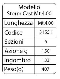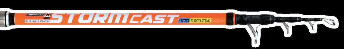 STORM CAST: Canna telescopica in carbonio con rinforzo a X in kevlar, anelli in SIC, portamulinello a vite ABS Con la sua azione e potenza si presta a tantissime tecniche di pesca, ma la sua specialità è sicuramente la pesca al Surf Casting o al semplicissimo CASTING dalle scogliere. Con il suo rinforzo in kevlar mantiene un'azione progressiva, ma molto rigida per lanciare sia galleggianti medio-pesanti che pesi fino a 150g Si può usare anche per la pesca al luccio o siluro