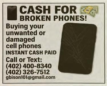 BAD CREDIT? Good credit? We’ve got financing options for everyone! We can help. See our large ad this issue. 7 Day Furniture, 72nd & L St., 402-502-5650 and 2240 Fletcher Ave., Lincoln, 402-467-1450. Offer may vary by store location. 7dayfurniture. net