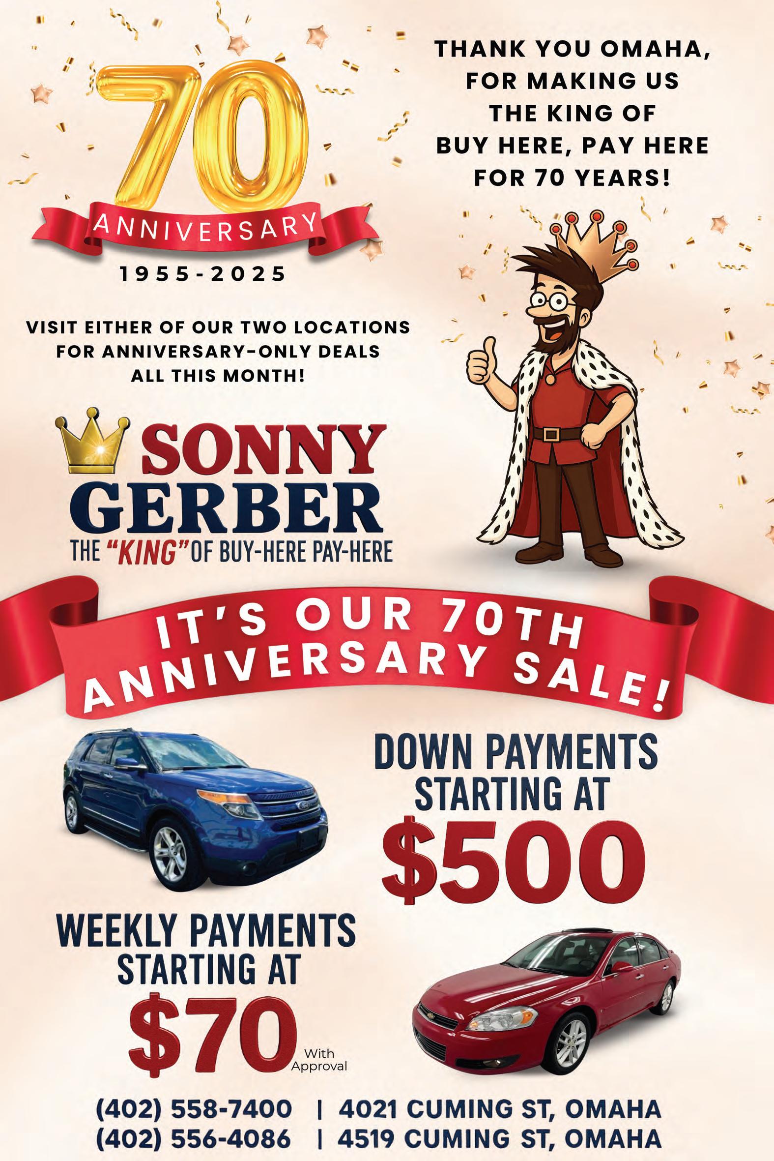 BAD CREDIT? Good credit? We’ve got financing options for everyone! We can help. See our large ad this issue. 7 Day Furniture, 72nd & L St., 402-502-5650 and 2240 Fletcher Ave., Lincoln, 402-467-1450. Offer may vary by store location. 7dayfurniture. net