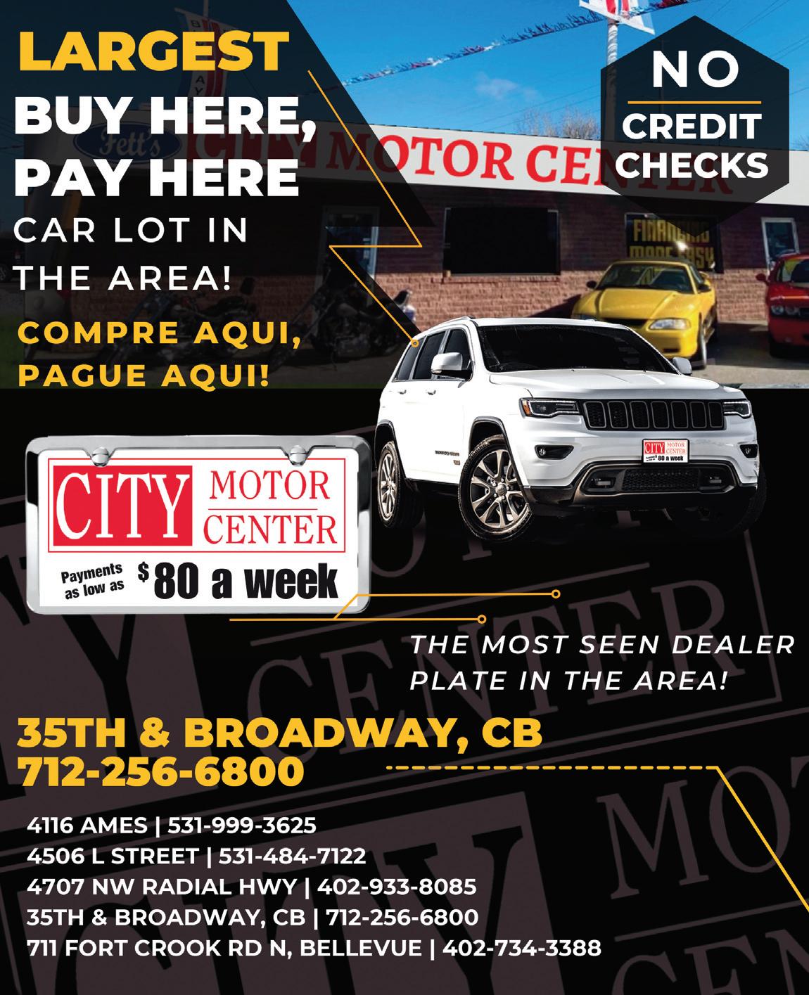 JOIN OUR TEAM! Hiring salespeople from entry level to advanced roles. Call for details, City Motor Center, 712-347-