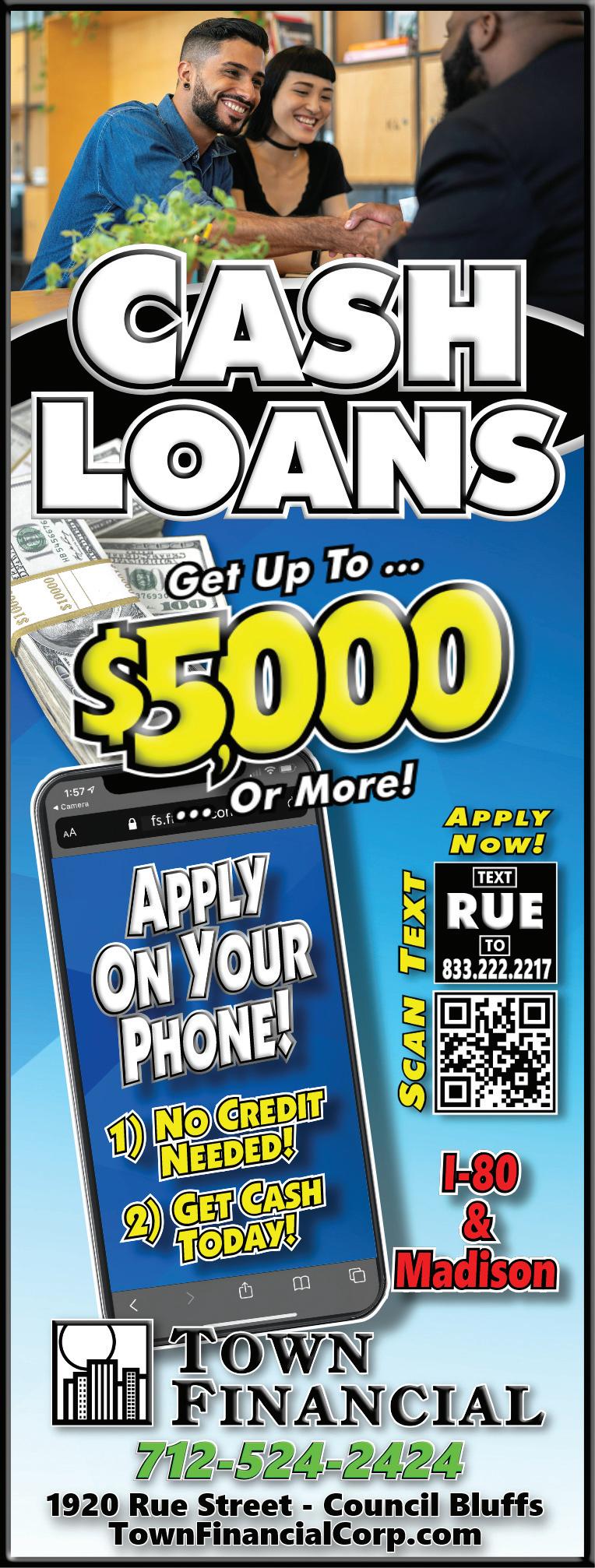 Loans from $300 to $7500, Town Financial 712-524-2424,