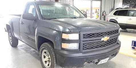 ‘03 Chevy Silverado, 4WD, reg. cab, long box, pw, pl, alloy wheels, pewter in color, #200170
