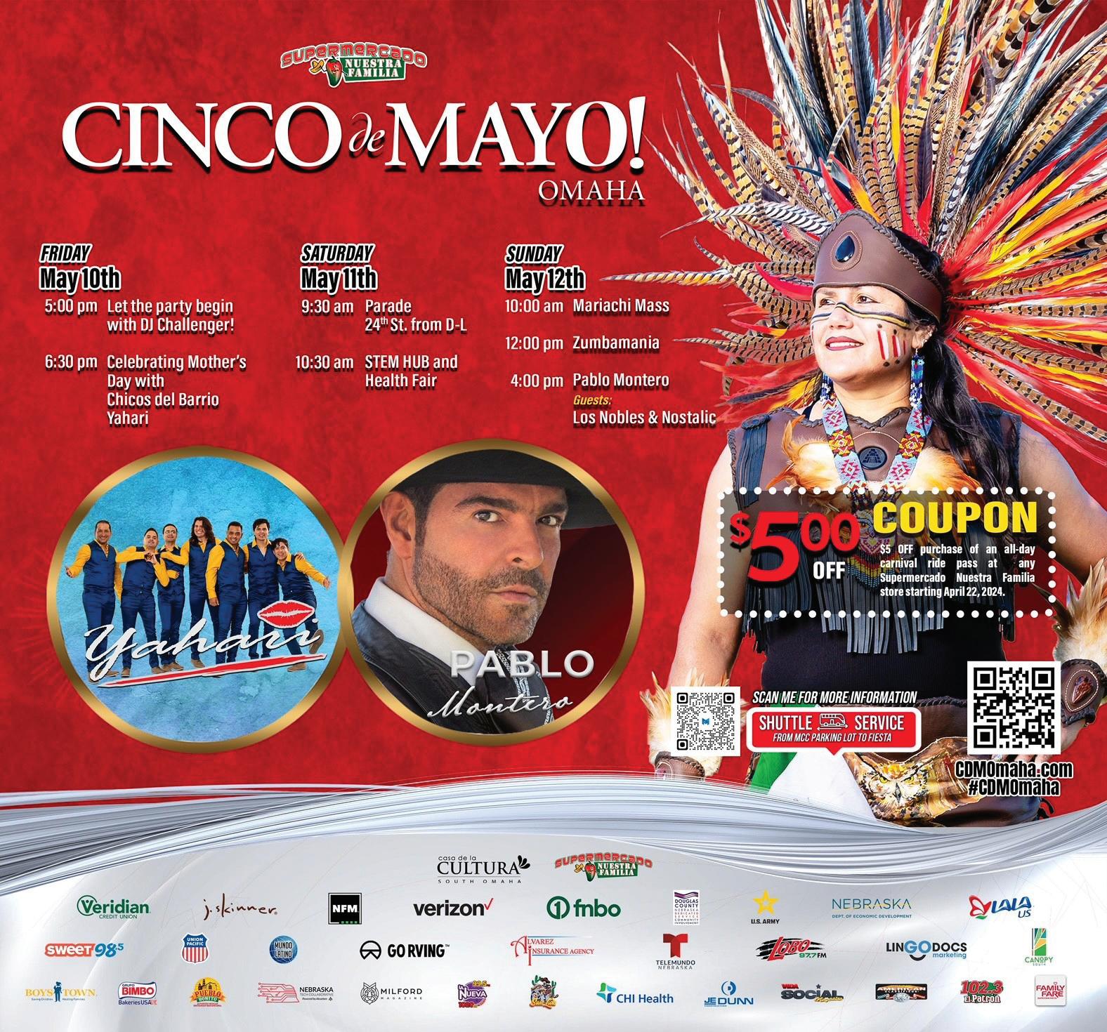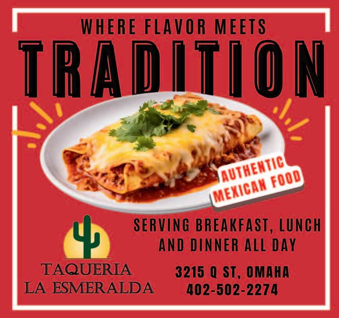 Something For Everyone! FRIDAY, MAY 10 5:00pm Let The Party Begin with DJ Challenger 6:30pm Chicos de Barrio & Yahari SATURDAY, MAY 11 9:30am Parade, 24th St. (D St. to L St.) 10:30am STEM HUB And Health Fair 1 - 3pm Childrens Art Activities Concerts & Entertainment SUNDAY, MAY 12 10:00am Mariachi Mass 12:00pm Zumbamania 4:00pm Pablo Montero Guests: Los Nobles & Nostalic Algo Para Todos Entretenimiento En Vivo Conciertos Vendores Comida Mexicana Authentica Desfile Feria de Salvd Carnaval Y Juegos Mucho, Mucho Mas Page 4 April 25, 2024 May 10 - 12 24th Streets From D St. to L St., South Omaha de Mayo 10 - 12 Calles 24 Entre Calles D & L, Sur Omaha LIVE MUSIC FOOD PARADE CARNIVAL EXHIBITORS CINCO de MAYO CDMOmaha.com CHILD CARE CHILD CARE HUGE INDOOR PLAYGROUND Stress Free Fun For Your Child! Healthy hot nutritional meals Educational bilingual activities Transportation provided to schools in our area Mon.-Fri.: 5am-11pm; Sat. 5:30am-4pm 6 weeks to 13 years 402-905-0100 4001 Harrison lossolesitos.com 36th & Harrison • Bellevue • 402-731-9311 newlifethrift.net NEW LIFE THRIFT Like New Looks For a fraction of the price! Check out our great selection! furniture, appliances, clothing, electronics and much much more! lots of gently used items to choose from! Hablamos Español 402-733-8576 3902 S. 42nd St. Omaha eckleyautobrokers.com