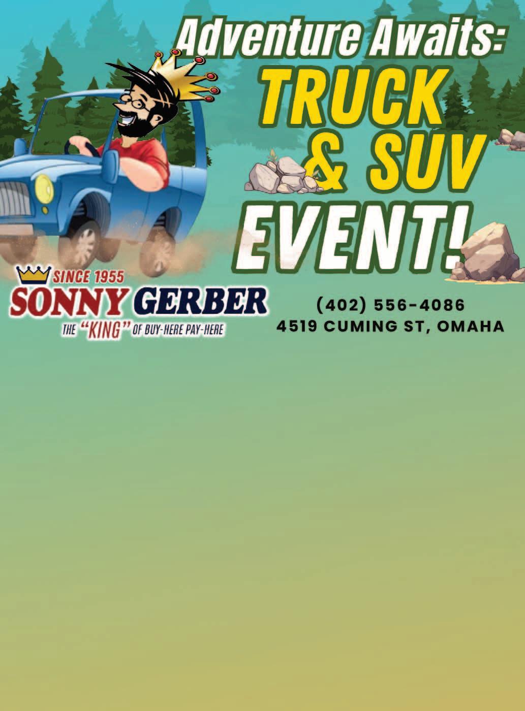 ARCADE GAMES, play at home, great family fun. Starting at just $599. See our large ad this issue, First State, located inside 7 Day Furniture, 402-3976633. 10% OFF Carpet Cleaning, commerical/ residential, flood restoration, pet odors, tiles, IICRC Certified, Omaha Metro Area. Free Estimates, Clean Matters Carpet, 402-909-5588, info@ cleanmatterscarpet.com GET AWAY TODAY! From vacations to emergency repairs, we can help! Cash Loans for any reason, from $500 to $5000 or more. Town Financial. Safe, local & fast! 712524-2424.