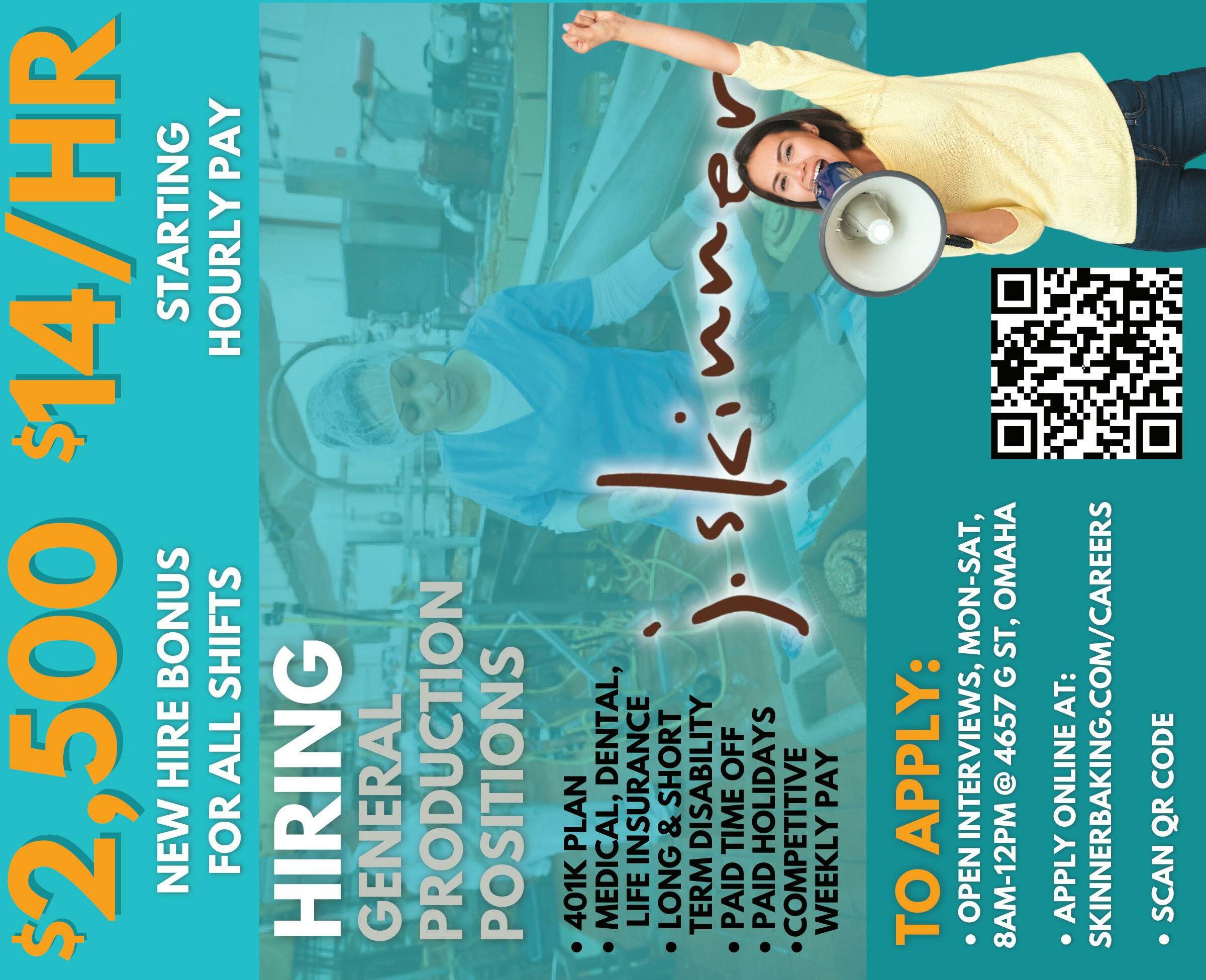 NOW HIRING: Banquet servers. Weekly pay, flexible schedule and more! Apply in person at Job Source USA, Inc., 8406 Park Dr., Omaha. Walk-in interviews Monday - Friday, 8am3pm, 402-331-4905. HALLOWEEN ITEM: bat lamp, $47.50, 402-7146888.