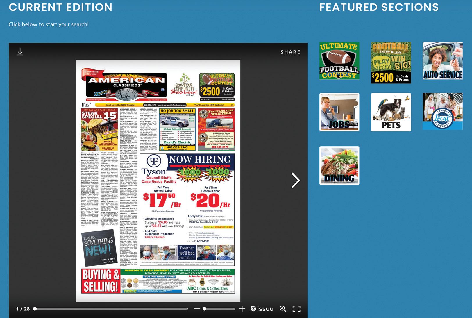 IF YOU can’t find your American Classifieds paper where you shop, ask the manager to give us a call and we’ll deliver papers to the store, 402-342-4426.
