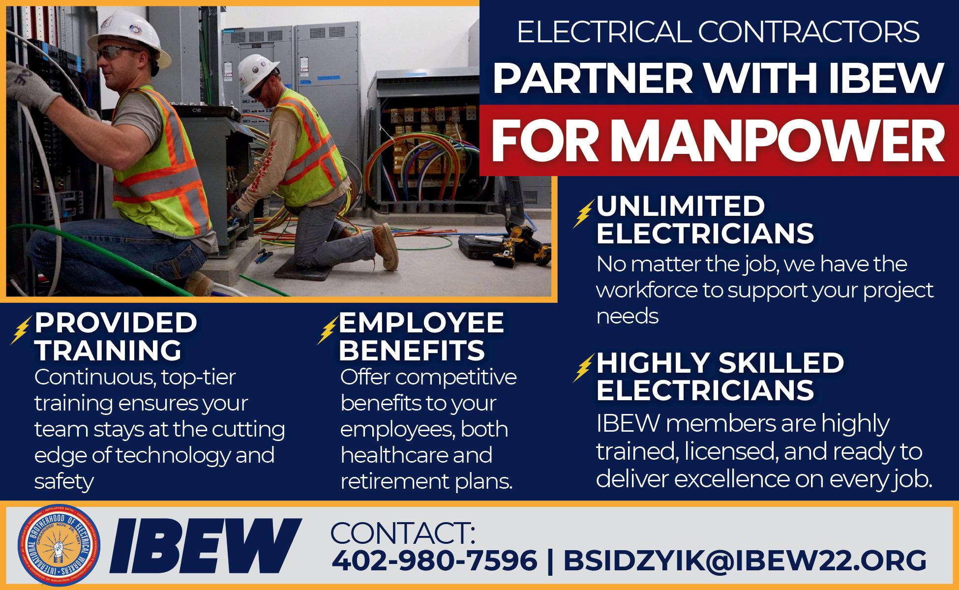 ARE YOU A journeyman electrician or have years of experience? IBEW Local 22 is hiring for the Omaha metro area. Call Bob 402-980-7596.