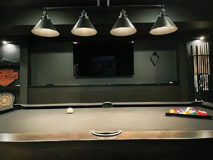 • Custom floor-to-ceiling linear fireplace wrapped in Cambria