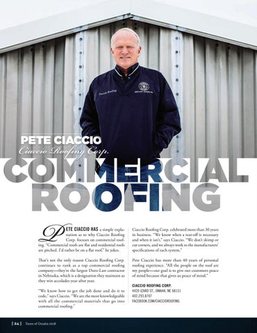 CIACCIO ROOFING CORP. 4420 IZARD ST., OMAHA, NE 68131 402.293.8707 FACEBOOK.COM/CIACCIOROOFING