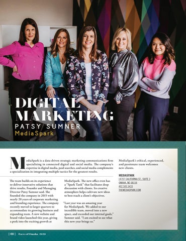 MediaSpark’s ethical, experienced, and passionate team welcomes new clients. MEDIASPARK 14707 CALIFORNIA ST., SUITE 3 OMAHA, NE 68154 402.505.5433 THEMEDIASPARK.COM