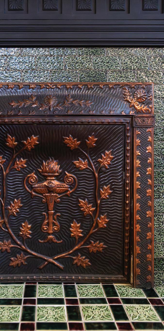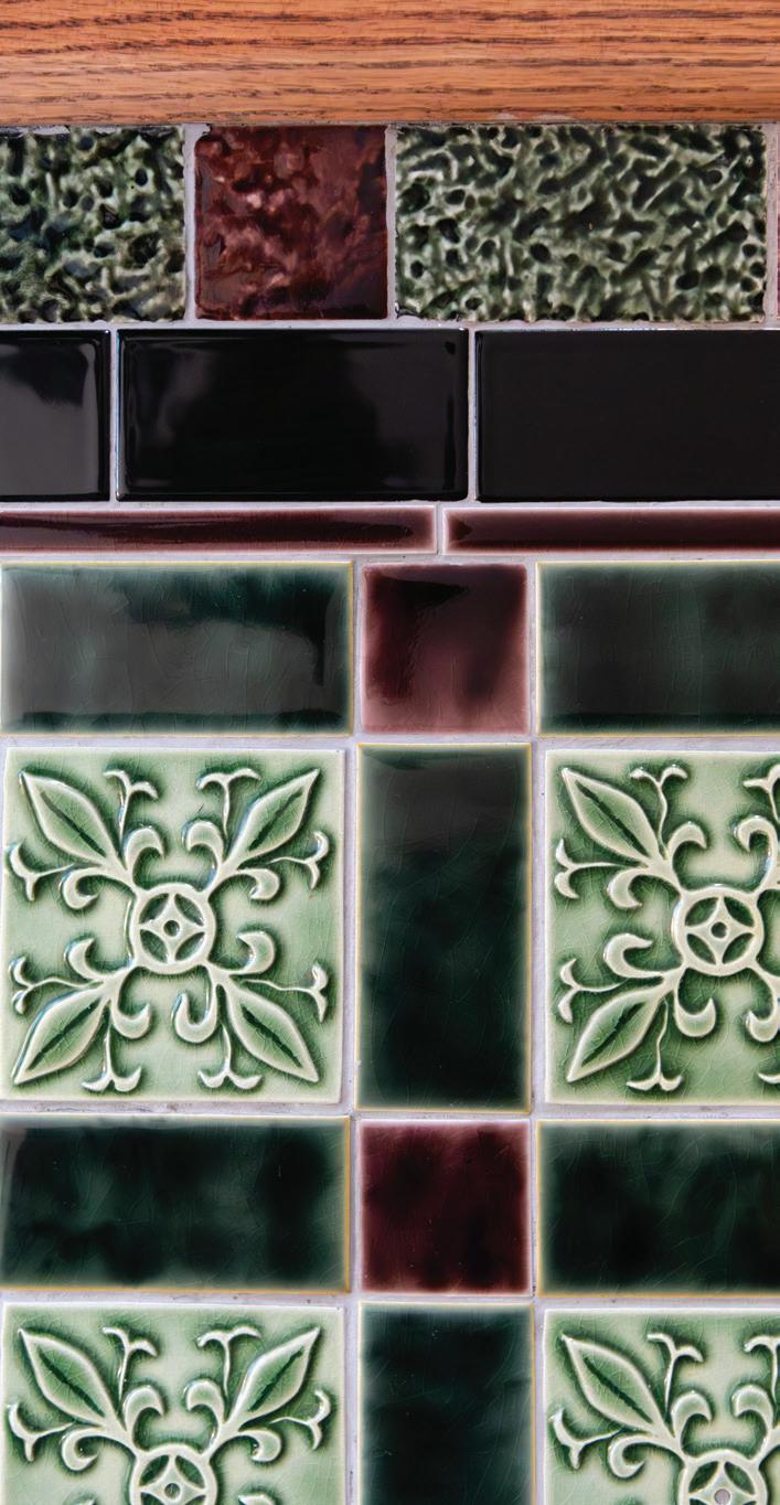 In a span of three years, Brennan has managed to complete various home projects, including restoration tile projects on the main-level fireplaces. The three fireplaces are located in the parlor, the dining room, and the living room. The surrounding tile is original, restored and renovated to perfect condition. The floor tile around the fireplaces is newly purchased tile installed to match that tile.