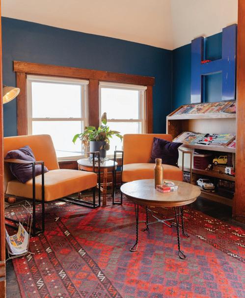 Built in 1890, the blue house was a bit of a fixer-upper. Floors were torn up and the walls were covered in layers of paint in baby blue and what Lueninghoener describes as “Pepto Bismol pink,” but the home had a solid structure. Lueninghoener saw potential. He began restoring it himself, ripping up carpet and refinishing floors.