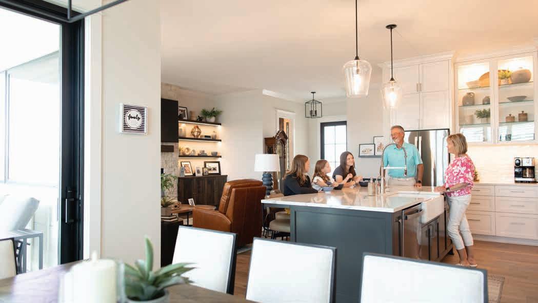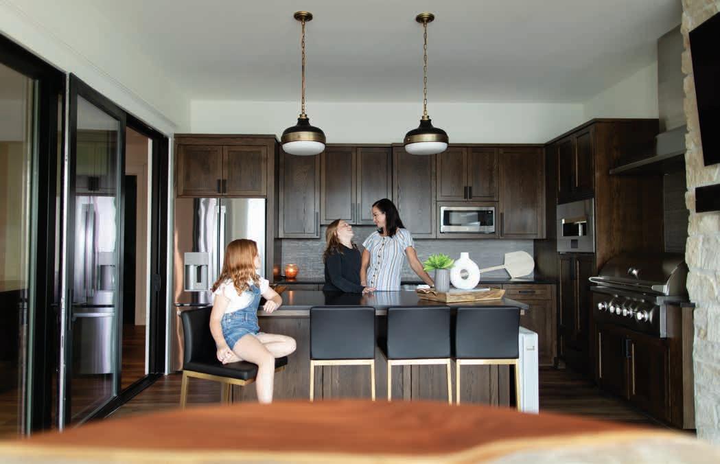 Love reins supreme throughout Jason and Alyssa Avenell’s elegant home in Newport Landing on Bennington Lake. It’s not about the luxury of their phenomenal property. Rather, it’s the fact that they built a dual residence to share with Alyssa’s parents. That means their children are growing up enveloped in love from two generations. Whether that means a quick jaunt into grandma’s kitchen to bake or a golf outing with grandpa, the Avenell children are experiencing something beyond a price tag.