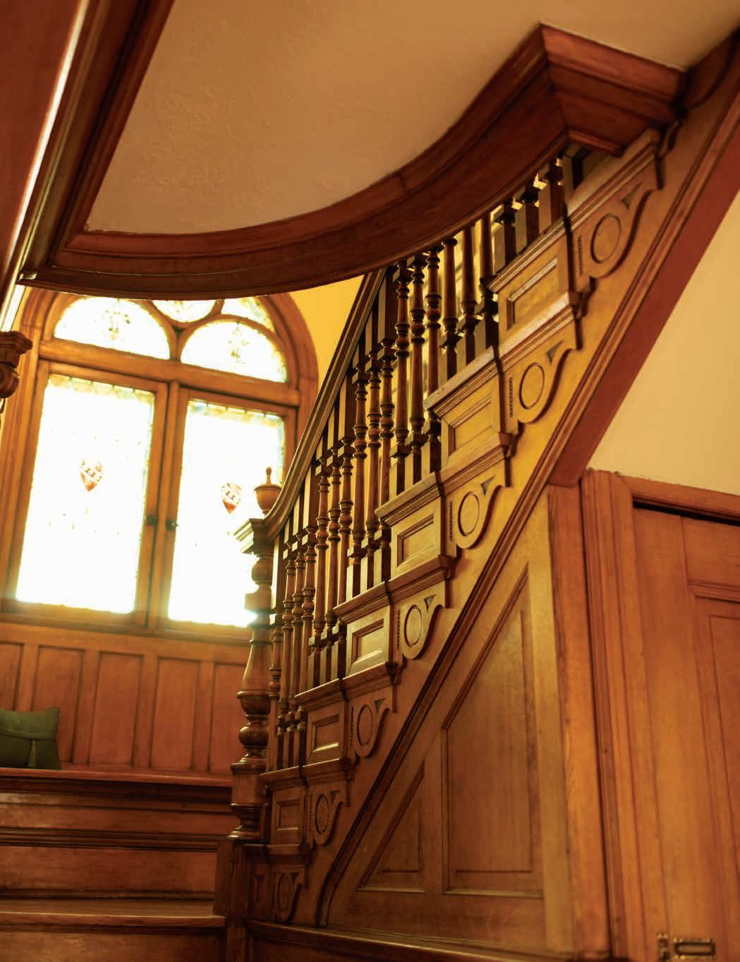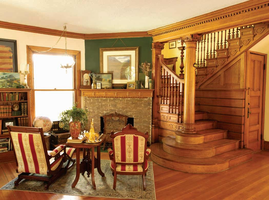“Previous owners used a lot of country blue, painted the fireplace white, very HGTV kind of ‘updates.’ This isn’t an HGTV house, and those updates don’t hold up against the original stained glass and antique hardware.