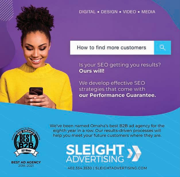 On a lighter note, our arts and culture section turns the spotlight toward inspired and inspiring members of the community including award-win ning documentarian Dan Napoli, rising pop starlet HARLOW, and cre atively reenergized Oglala Lakota painter, Nathaniel Ruleaux. Meanwhile, our dining feature pays homage to Omaha staple Cascio’s, and how the family-owned steakhouse continues to adapt and fill seats through 76 years in business.