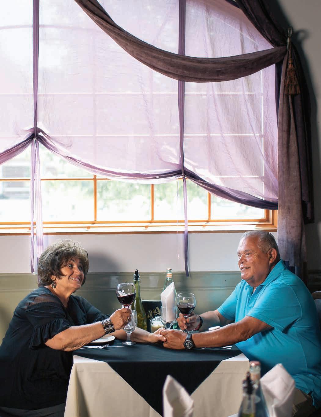 Exceptional food, wine, and service, with a delectable menu: fresh seafood, certified Angus steaks, innovative pasta, risotto, gnocchi, cioppino, lamb, entrée salads, Mediterranean chicken, flatbreads, and fresh salmon daily. Enjoy a full bar, Italian and California wines, Anniversary/ Lovers’ Booth (call to reserve), private dining rooms, and woodfired grill. Open Monday-Sunday. Cocktail hour 4-6 p.m., when all cocktails, glasses of wine, and beers are half price. Evening reservations recommended.