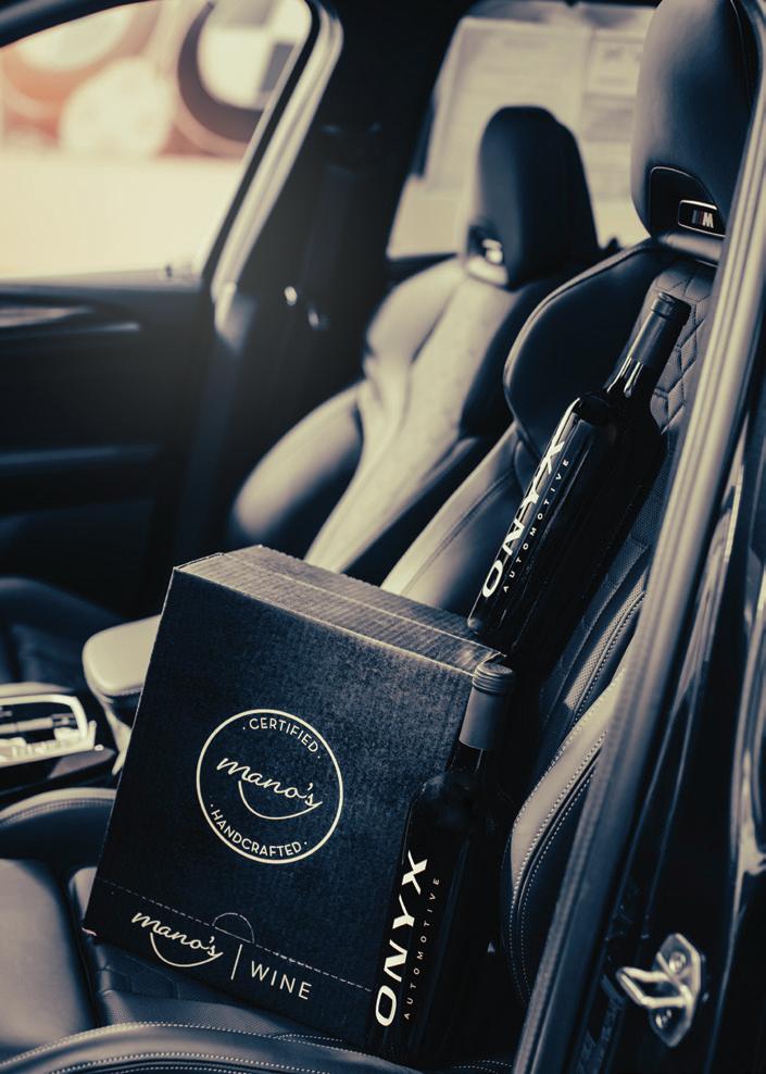 When ONYX Automotive customers visit the luxury car dealership to pick up their new vehicle, they’re presented a souvenir of their buying experience— handcrafted, elegant bottle of reserve Cabernet, beautifully etched with the ONYX Automotive logo.