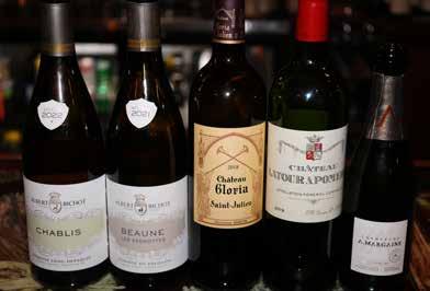 The Second Course was Seared Duck Breast. The Cherry-Fig Compote was a spot on sauce, as fruit always complements duck. Another Albert Bichot wine, Beaune “Les Epenottes” Domaine du Pavillon 2021 was a wonderful match, structured, fruity and well-balanced Pinot Noir. Next we had our Entrée: Chateaubriand with Sauce Béarnaise, Grilled Asparagus and Parsnip-Potato Flan. Chateaubriand is the cut from the large center of the tenderloin meant to be shared with multiple persons. The parsnip served to reduce the intensity of the potato flavor. We compared Right and Left Bank Bordeaux here. The Château Gloria 2018, a Saint Julien Left Bank was opened in what Hasan Hyder calls a Flash Decant. In this case, it was opened 24 hours earlier for one hour, then poured back in the bottle. The Right Bank wine, a Château Latour à Pomerol, was Flash Decanted 24 hours earlier and allowed to breathe 3 hours before being poured back in the bottle. To assist the memory, the Right Bank was placed on our right side, and the Left Bank on our left. What was interesting was how the two reds changed in the glass while on the table, especially the Left Bank. The advanced breathing definitely helped open up the wine.