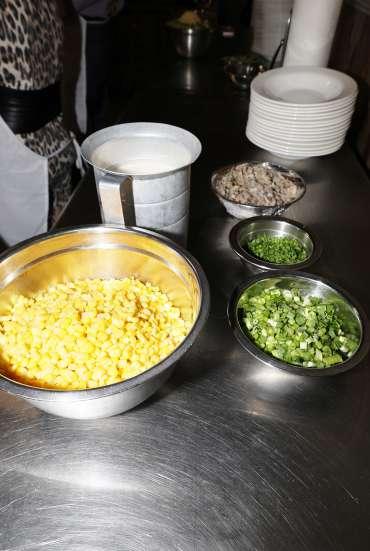 So the cooking process was about the same for both the Corn & Crab Bisque and the Étouffée. For the chowder, add corn (an indigenous or local product), and stock and spices, add cream and crabs and simmer for 5 minutes. For the Étouffée (which means smothered), make roux, add Trinity, add heated stock, cook for 20 minutes, then add crawfish and cook another 5 minutes and season. Either dish could be cooked over a campfire in a single pot. The process is simple but a bit time consuming for the broth and roux.