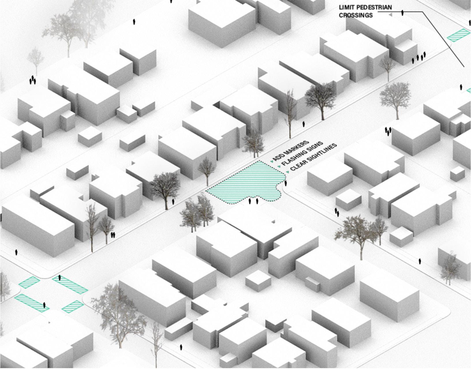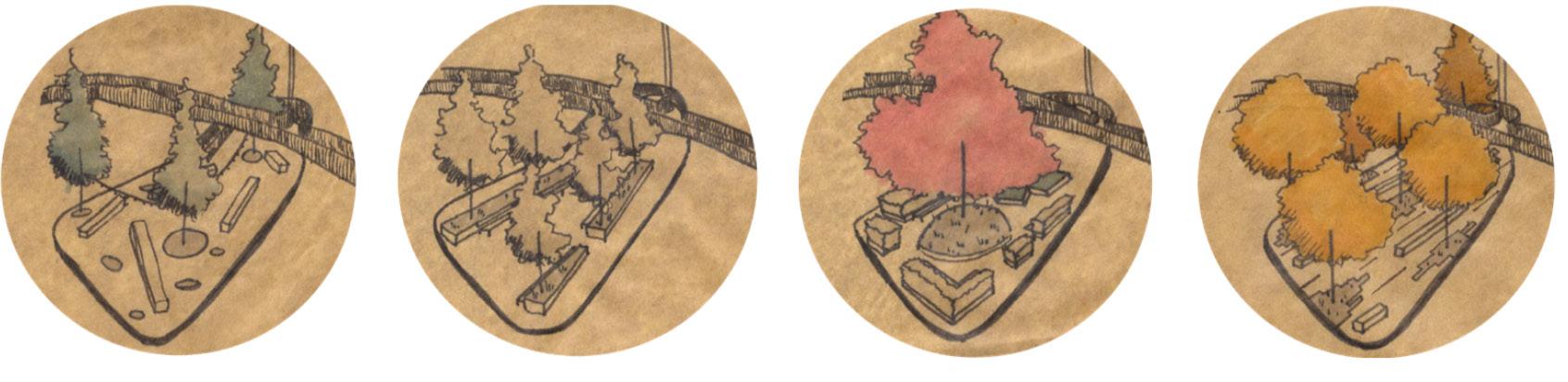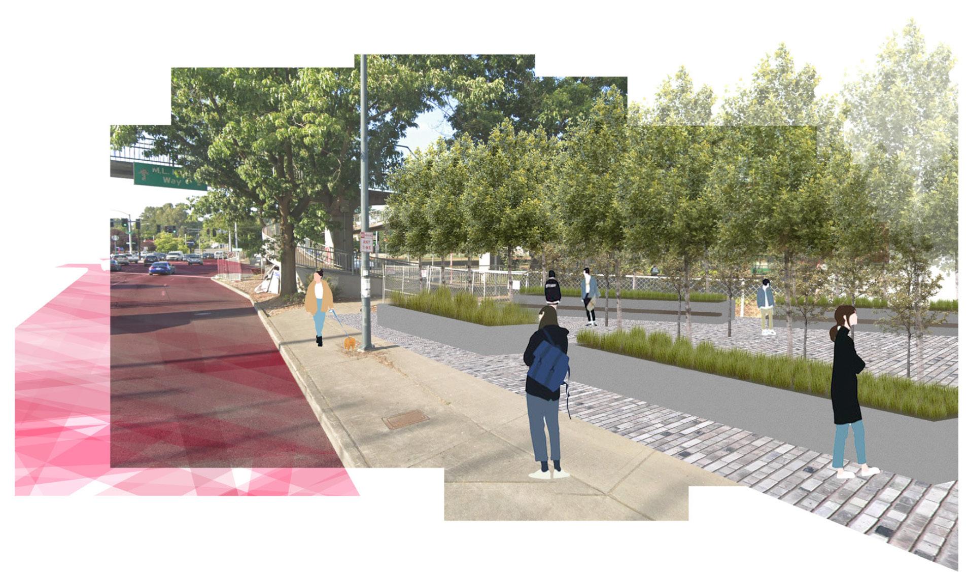 My vision for the site was that I wanted to help create a public space that brought safe open plazas for the public to enjoy and slow down in. I wanted to have public safety and the potential for activity spaces to be introduced in the future. The site was close to the lightrail station and Franklin High School, so it has a lot of commuters and different timeframes for usage throughout the day. Walkability was something that I noticed would be nice to improve on in the area since the time frame from getting from one side of the road to the other and the amount crosswalks/undesired paths people would risk to take. I drew insperation from site visits I had done in the Belltown neighbrohood of Seattle, WA to improve on walkability and safety. I also knew going into this project I would have to plan out the concept in phases and introduce remedy sites to deal with onsite stormwater managment tactics for all the hard surface spaces and site analysis I had done. I used inspiration from projects like the Thornton Creek in the northgate neighborhood of Seattle, WA and Cheonggyecheon in Seoul, South Korea.
