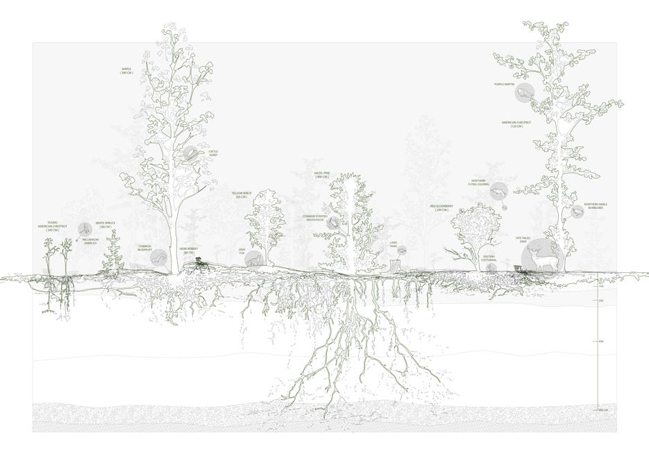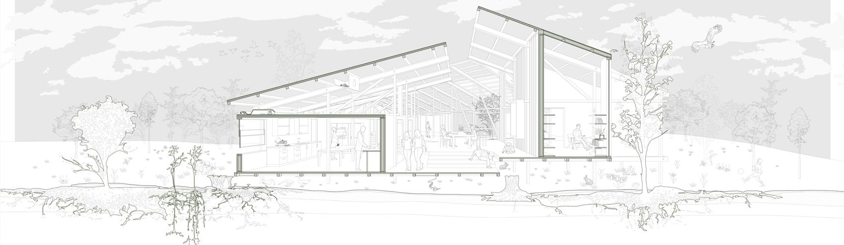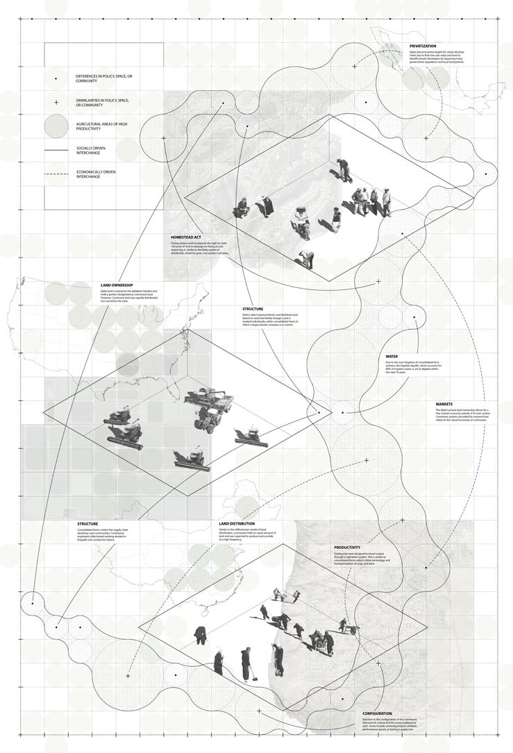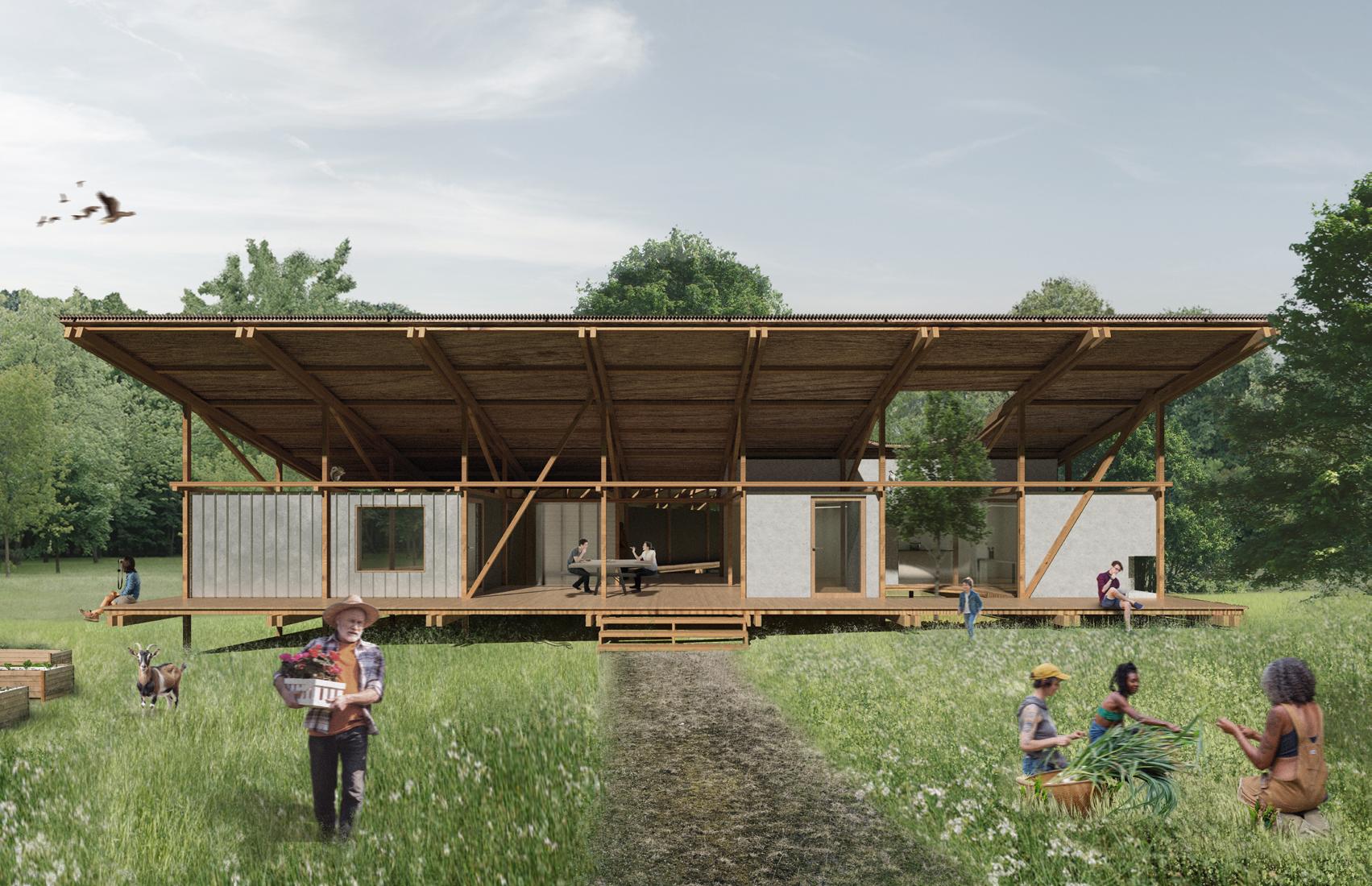 This proposal explores the design of a learning farm in Ithaca for Amanda David of Rootwork Herbals, conceived as a site for reimagining the relationship between land, labor, and multispecies coexistence. Through the lens of people’s movements that advocate for communal land care and collective labor, the project interrogates how architecture can act as a facilitator of mutual care between humans, animals, and the land itself. Sound and physical proximity become tools for fostering coexistence, with spatial strategies that prioritize sensory awareness and non-extractive occupation of the land.