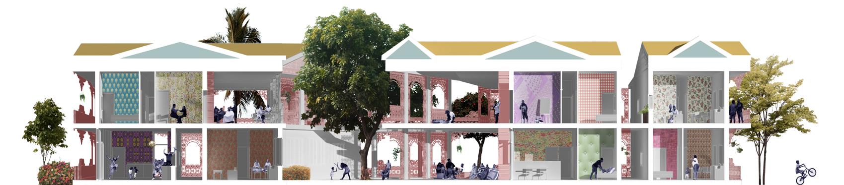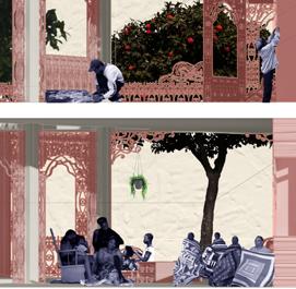 This public housing proposal focuses on the duality of domestic life in Liberty City, Miami by emphasizing the existing rituals of black and bohemian culture within the neighborhood and those activities held in the porch.Through the re-imagining and reconfiguration of existing housing units and the iron work that accompanies them, the design aims to re appropriate what is overlooked such as iron work and utilize it as a bridge between the body and the activities embedded in the community. The iron work and the units both adhere to the needs of its users and becomes the threshold between private and public spaces by stitching these existing activities and quilting them together into one community.