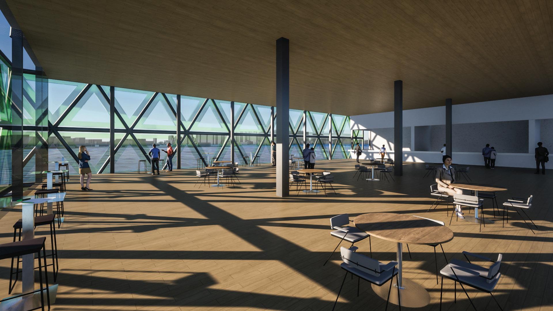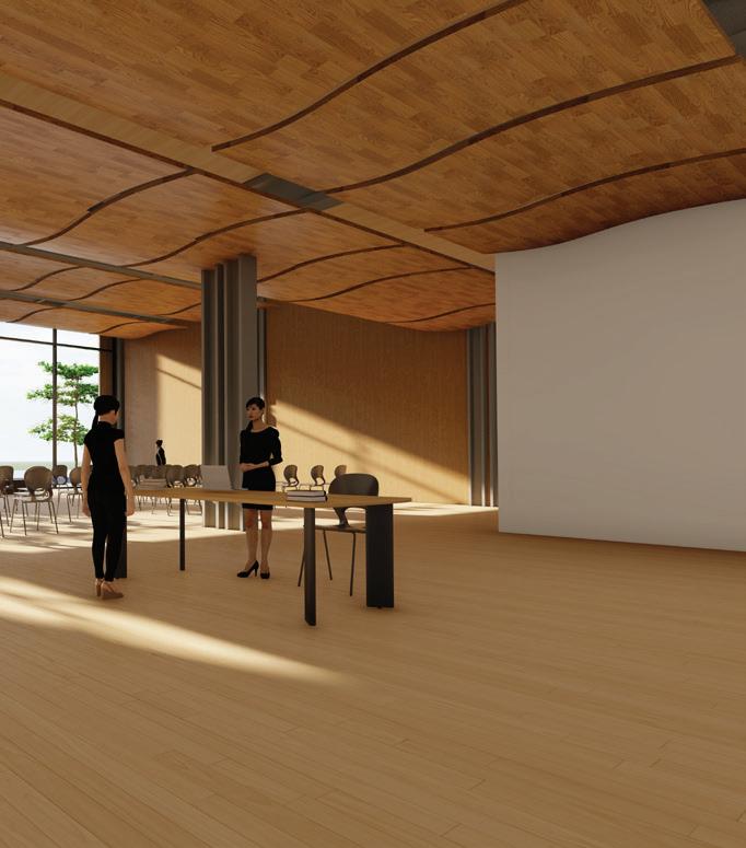 In order to achieve this sense of tranquilty and breathability at the interior of the Re-Integration Center. The idea was to combine steel framing and neutral wood colors both at the interior and exterior of the buillding to get a sense of openess and overall sense of security for the users of the space., which through the use of these materials opens up the floor plan of the building.