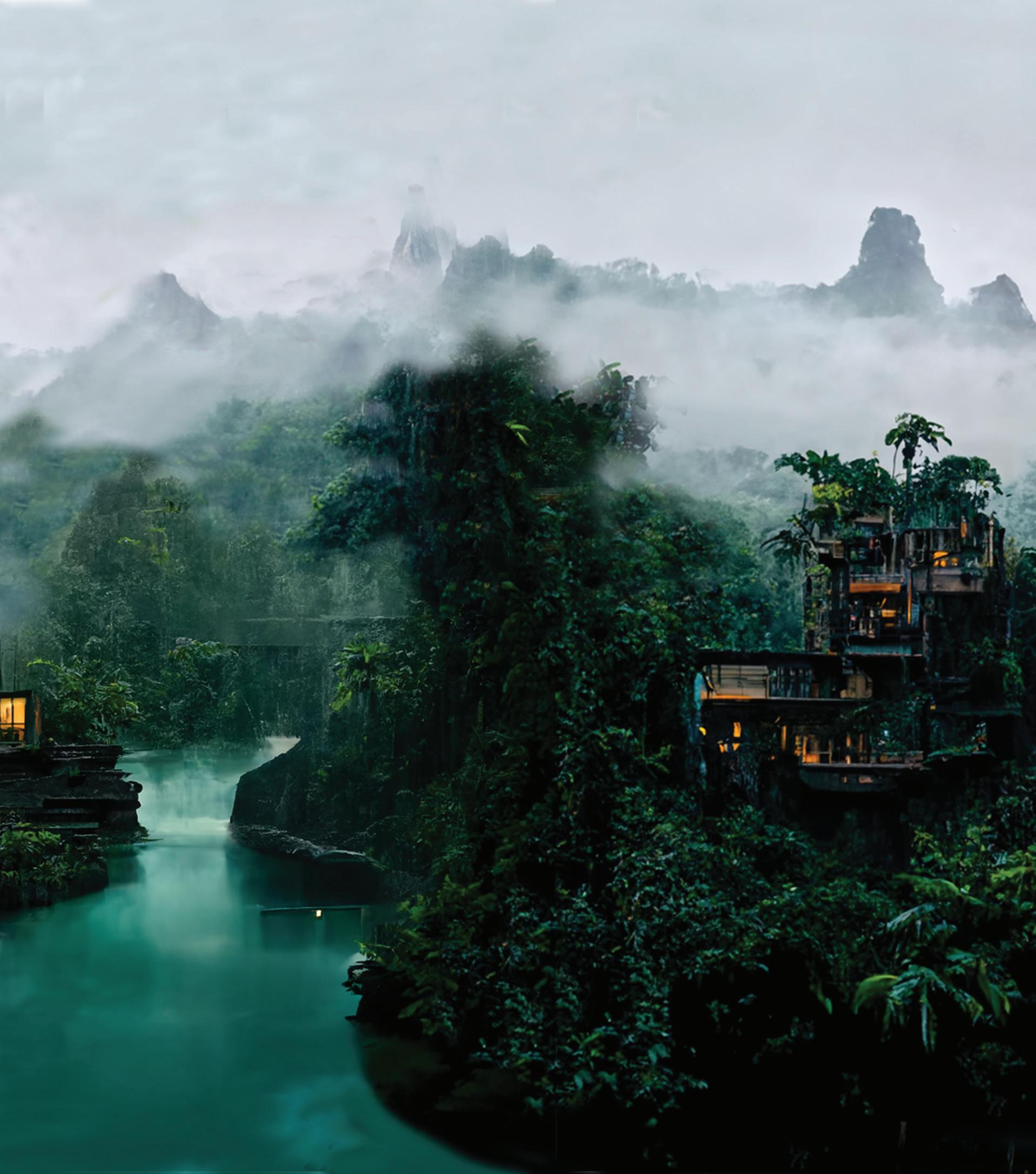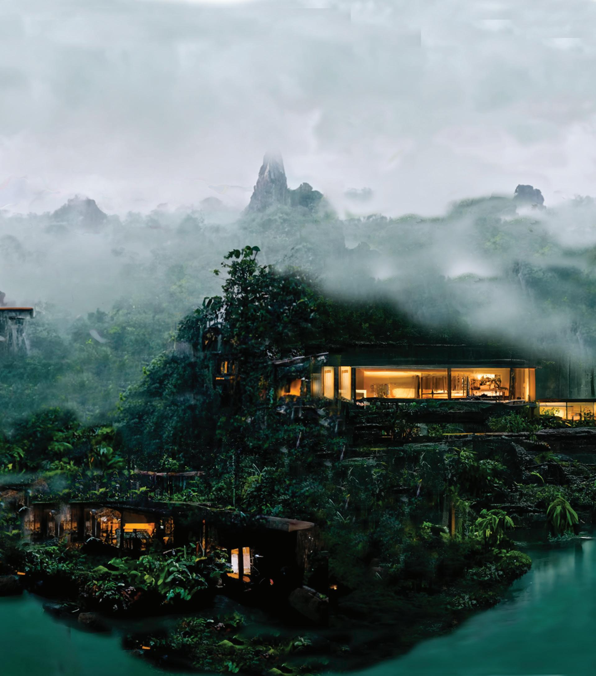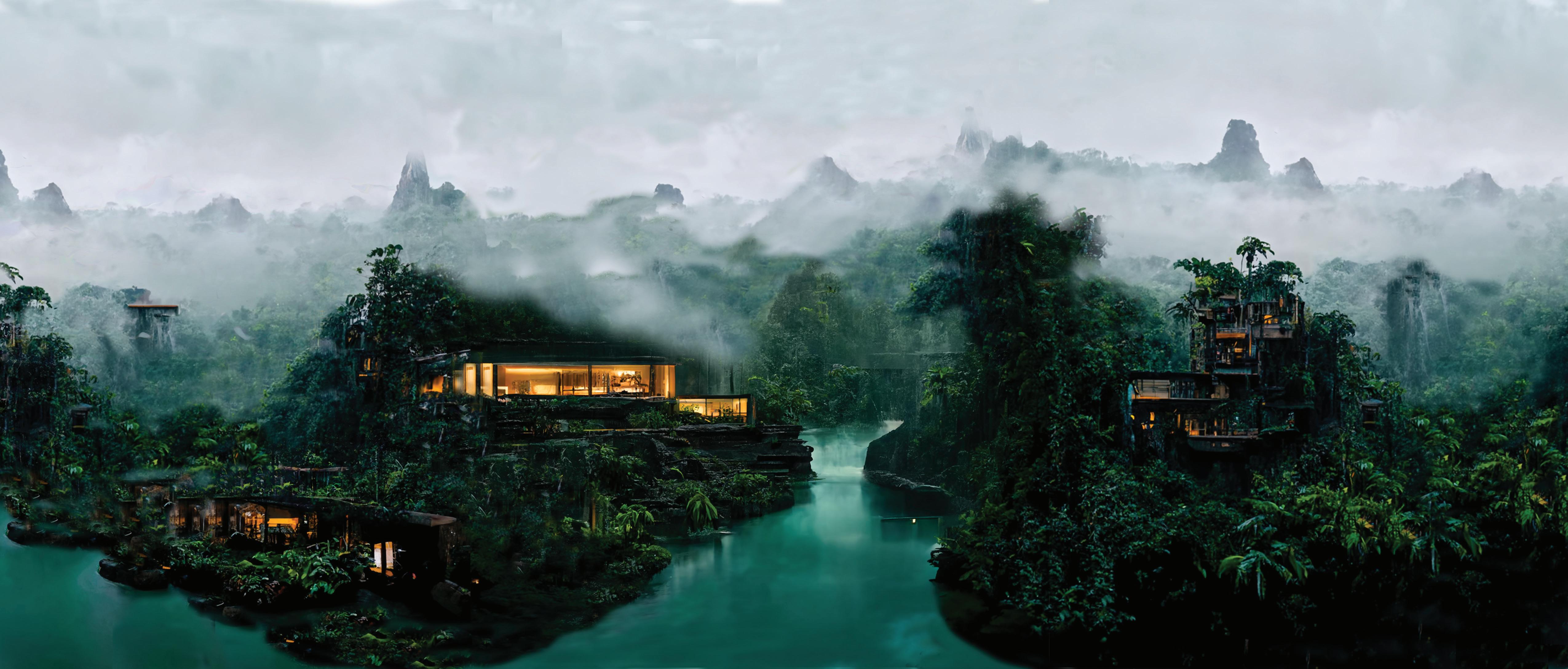 Amazon Rain Forest, Brazil | UW ARCH 506 FALL ‘22 | GOLDEN RHINO, CLIMATE STUDIO, ILLUSTRATOR, PHOTOSHOP, MIDJOURNEY