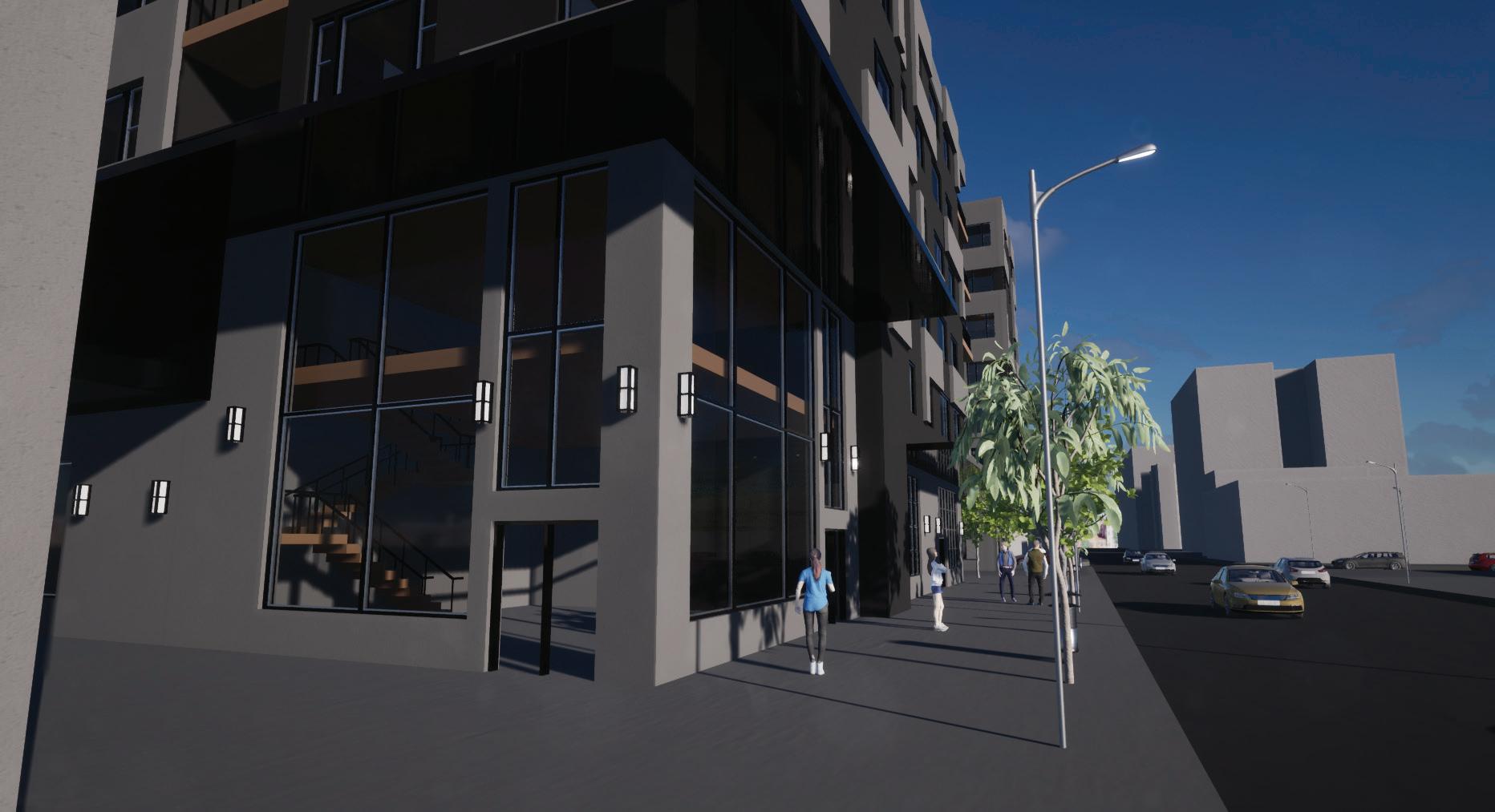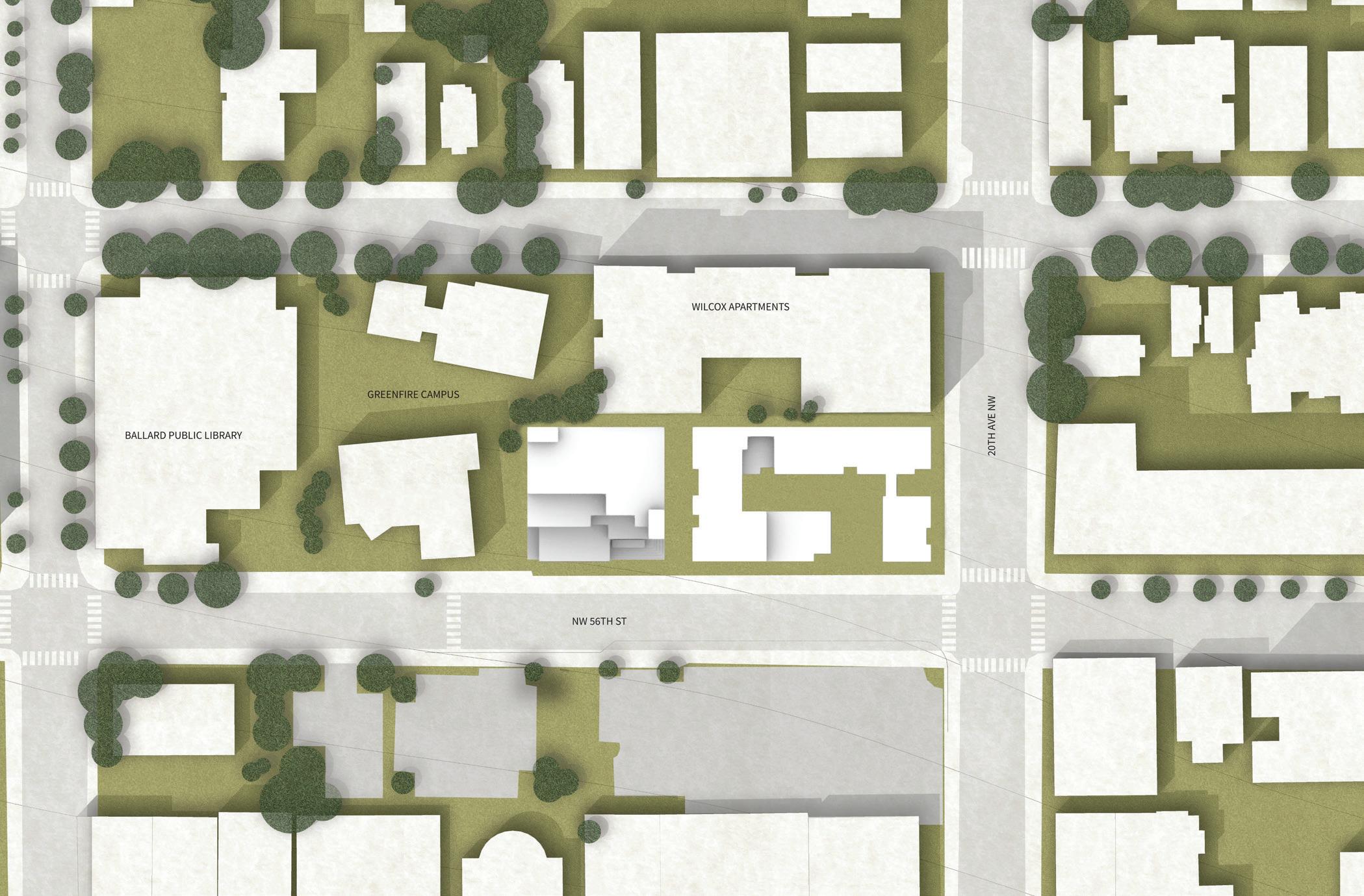 Situated at the corner of NW Market Street and 20th ave the concept for this project was to activate the corner of the street to allow for more people to come into the site, by creating double height commercial spaces at both the east and west corners of the building at ground level. In the mean time, the apartments on the upper floors were situated with the intent to provide as much sunlight into the units but also provide non-obstructed views to interior courtyard and exterior, in order to maximize sunlight exposure coming in from the south.