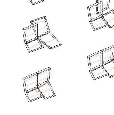 and lines that indicate a fold is scored with a dashed line on the opposite side to the bending direction. Obviously, such an operation requires millimetric accuracy, and there was an e ort invested in streamlining the process to achieve it.