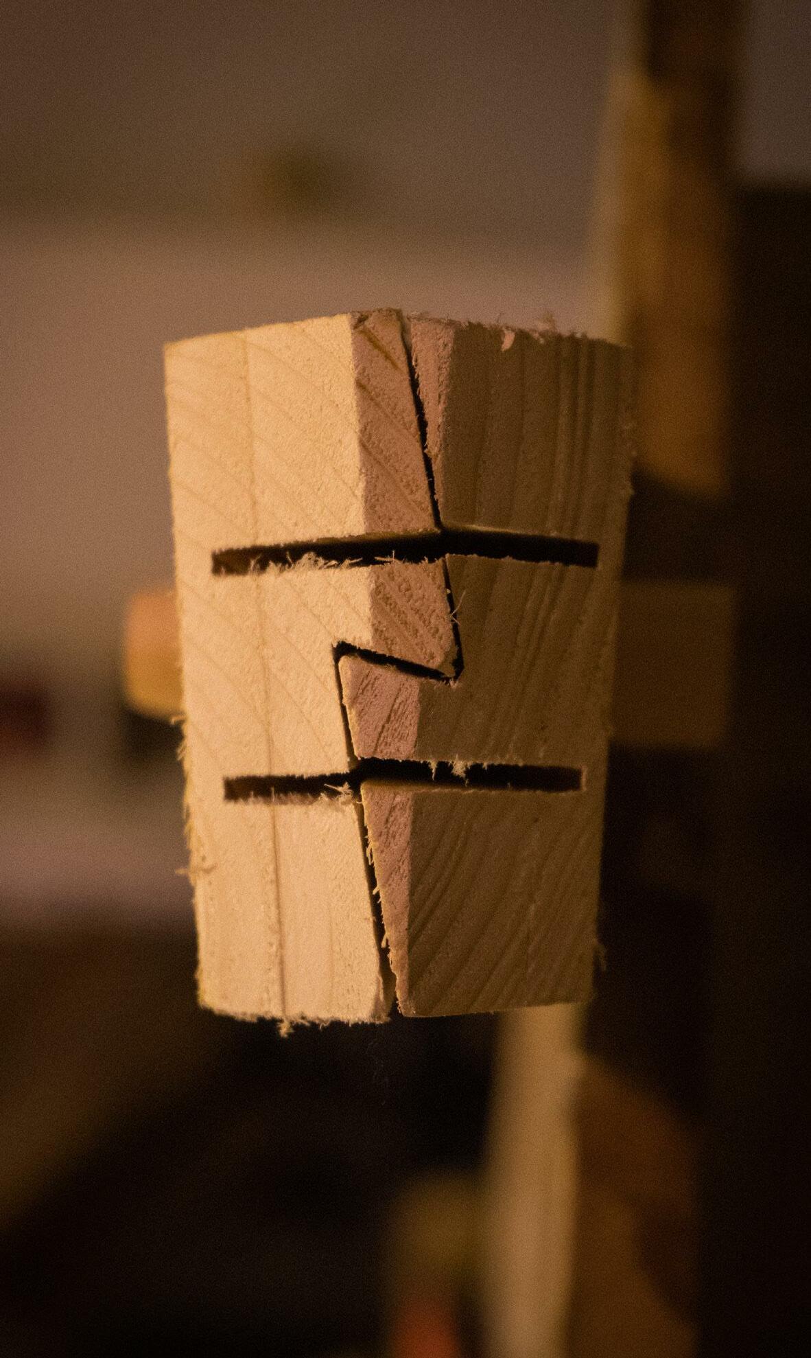 For installation, two parallel notches are cut out at the base of each tree trunk that allows the connectors to slide in and bear into the wooden shoulders, while cut with enough room to