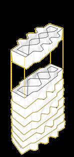 The exterior skin has several partitions designed with a parametric logic of distance and width to form a step like pattern