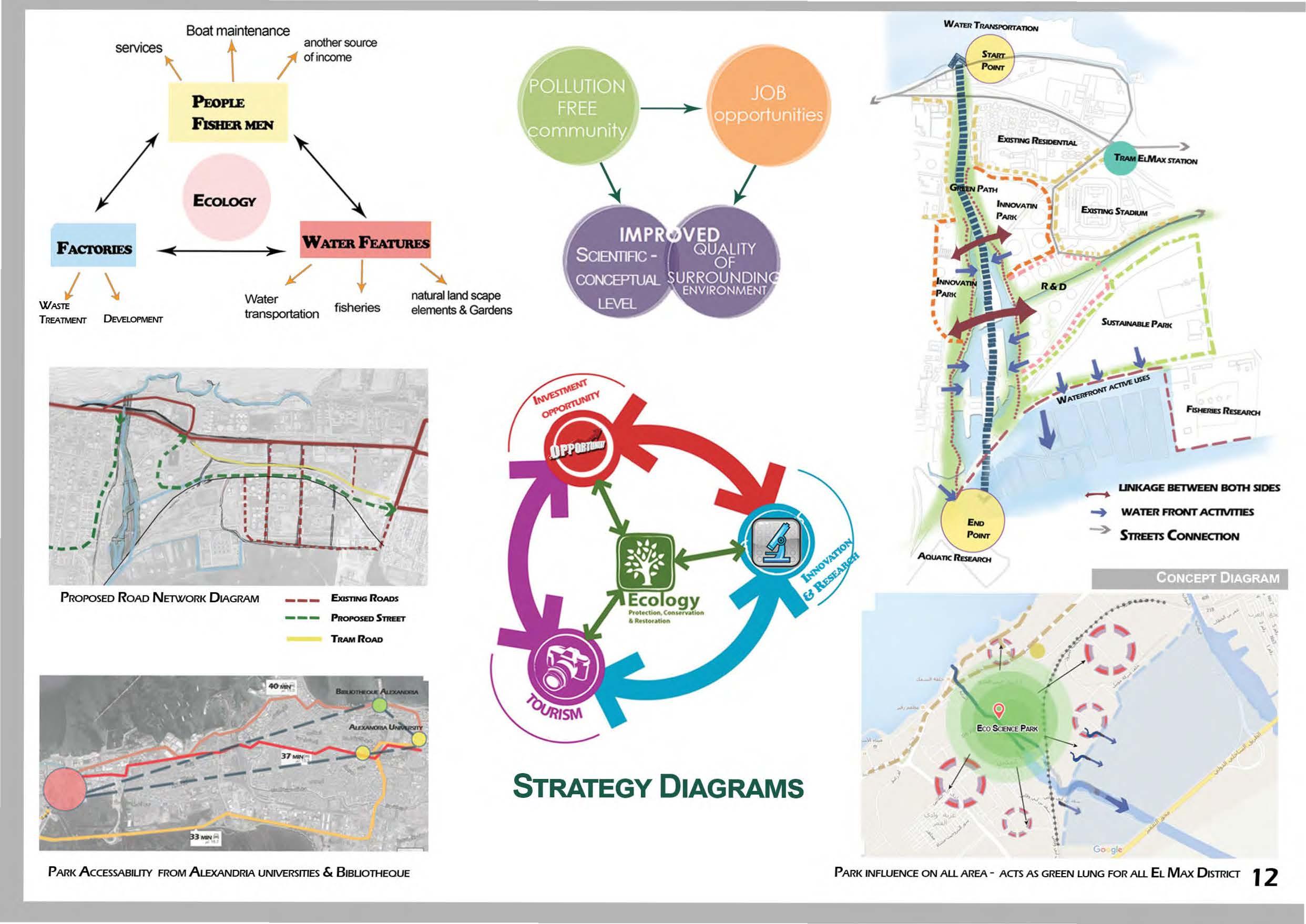 services \ Boat maintenance t EcOLOGY another source / ofincome I \ WAS1E TREA1MENT D EVELOPMENT Water transportation PRoPOSED RoAD NElWoRK DIAGRAM --fisheries ExlsnNG RoADS PRoPosm STREET TRAMROAD pARK A cCESSABIUlY FROM AlExANDRIA UNIVERSmES & BIBUOTHEOUE natural land scape elements & Gardens STRATEGYDIAGRAMS I \ \ \ F ISHERIEs fWEAAot \ ----"" ...LN<AGE BETWEEN BOTH SIDES .......... .... WATER FRONT ACTMTES - > SmEE IS CONNECTION CONCEPT DIAGRAM ..... ,... .......... , ,. ..• / , /" y \ G o g le pARK INFLUENCE O N ALL AREA- ACTS AS GREEN LUNG FOR ALL EL MAX DISTRICT 12