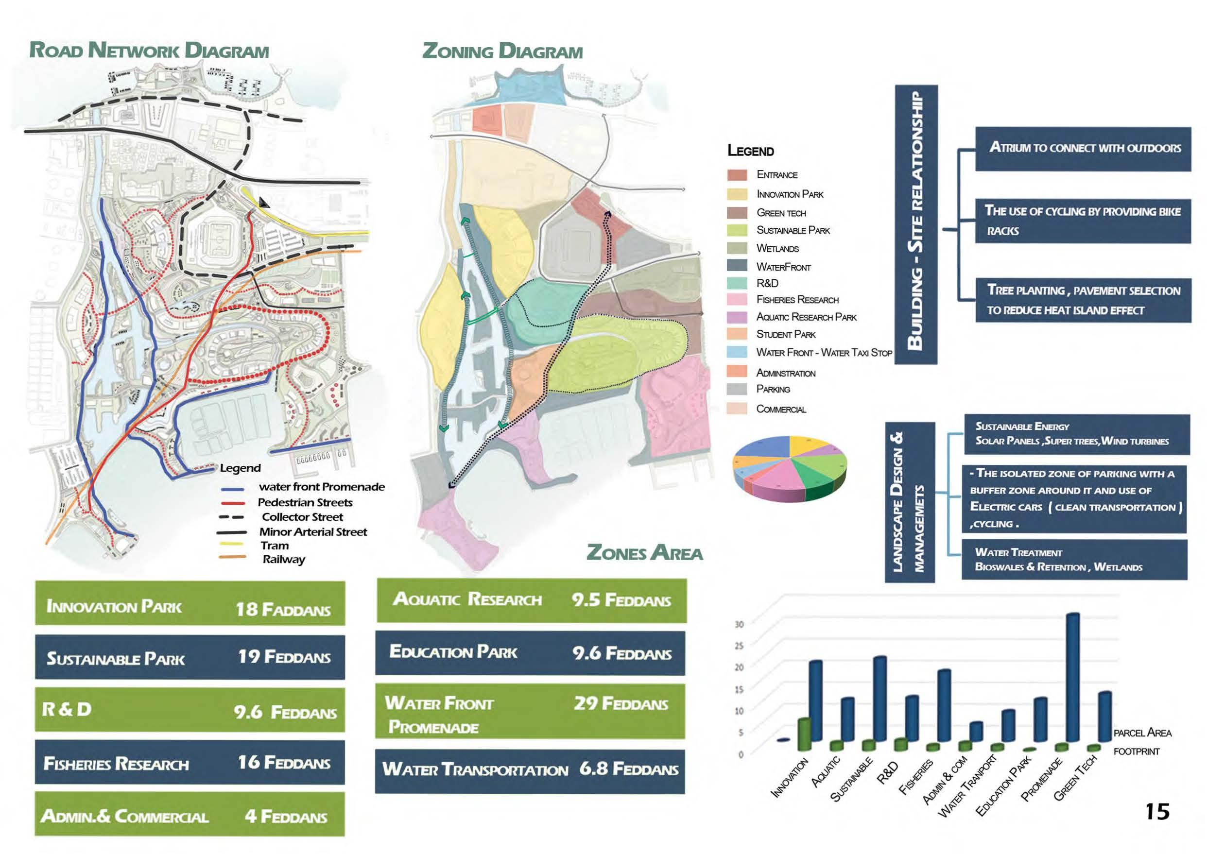 RoAD NETWORI< DIAGRAM .._,.,, .. ..' .... • z :; =: :; . .-- ...._\._ ' ---ZONING DIAGRAM ./'.. .-":.. .• ·· ·. \ ::.······_:; ..[! .· ... i .-::·l ,.... ········ l: ........,.,.,,..· .·<-''')!············-·········· ...• .... .... .....· .:::::::::i' · - w a t er front Prom ena d e c · II - Ped e strian Streets II Collector Street-r - Minor Arte ria l Street - Tra m - Railway ZoNEs AREA INNOVATlON PARK :18 FADDANS AOUAnc RESEARCH 9.5 FEDDANS , SUSTAINABLE PARK 19 FEDDANS EDUCATION PARK 9.6 FEDDANS R&D 9.6 FEDDANS WATER FRONT 29 FEDDANS PooiVlENADe FISHERIES RESEARCH 16 FEDDANS WATER TRANSPORTATION 6.8 FEDDANS leGEND ENTRANCE II'J\IOVATlON PARK GREENTECH30 2S X) n 10 $ 0 SUSTAINABLE PARK WETI..AI'-JDS WATERFRONT R&D FISHERJES ReseARcH AQUATIC ReseARcH pARK STUDENT PARK WATER FRONT WATER TAXI STOP AI::MNSTRATlON PARKINGSUSTAINABLE ENERGY SolAR PANELS ,SUPER TREES, WIND TURBINES WATER TREATMENT 8JOSWALES & RETENTJON WETlANDS FOOTPRINT 15
